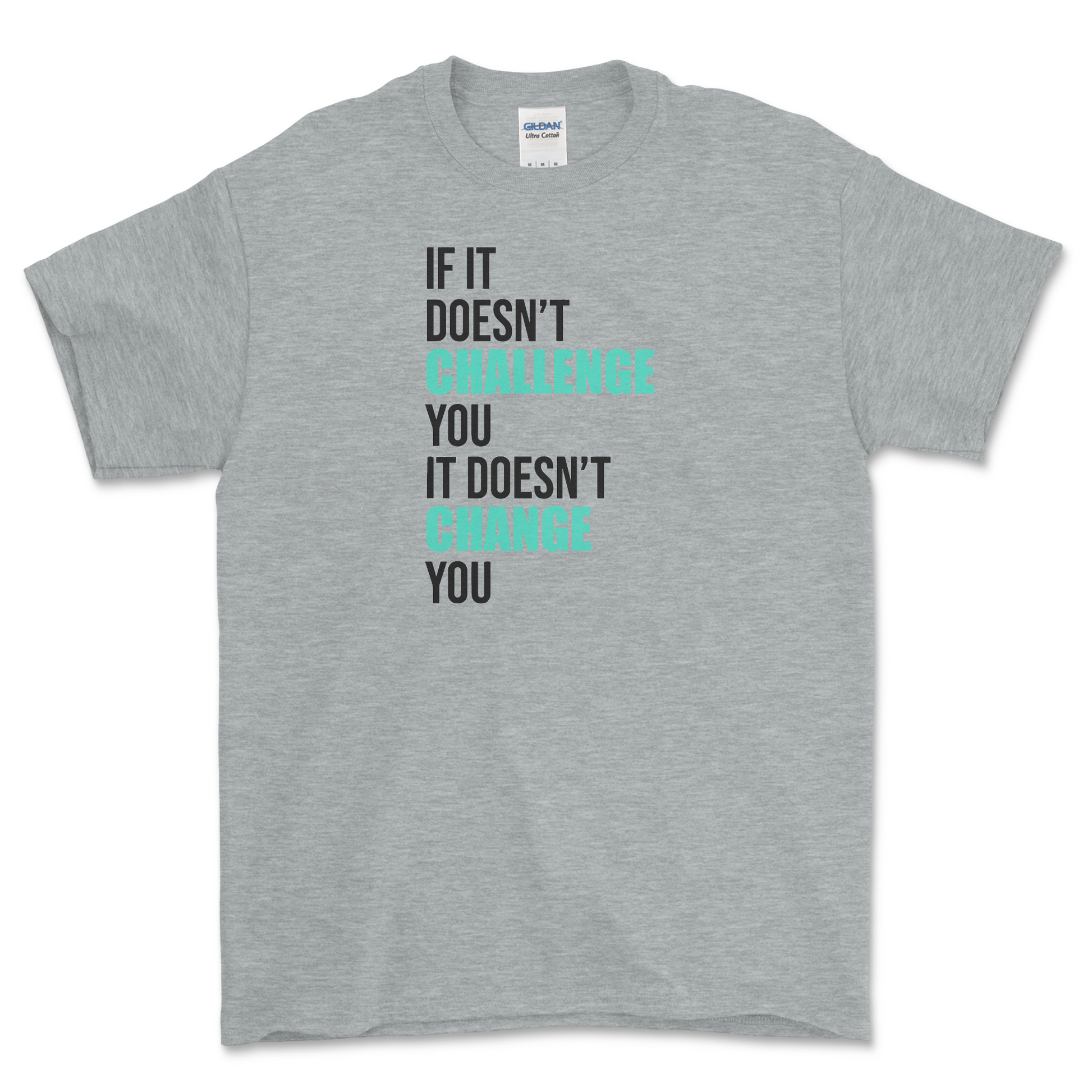 - Double-needle stitched sleeves, bottom hem, and front neck